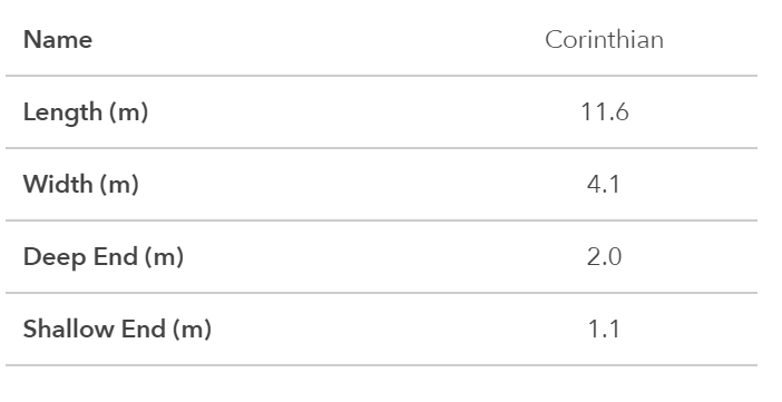 The Corinthian has a vast amount of room for swimming making it the perfect pool for large parties. Optional spa jets can also be added to this swimming pool.