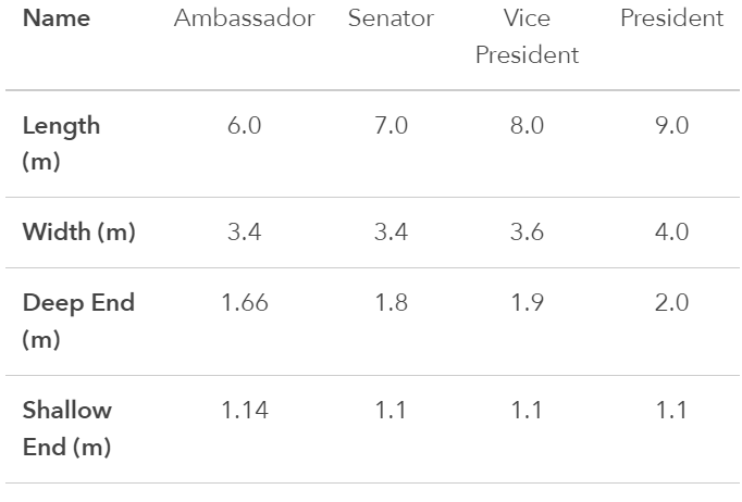This pool allows for easy entry and exit due to steps positioned on each side of the shallow end. The President range also boasts two seats in each corner of the deep end, making it not only a stylish choice, but a functional and practical one too.